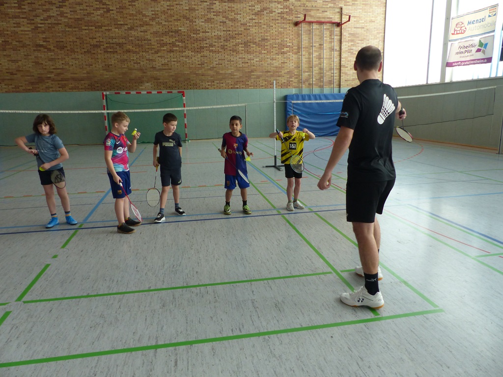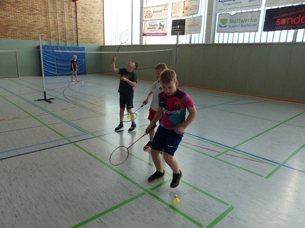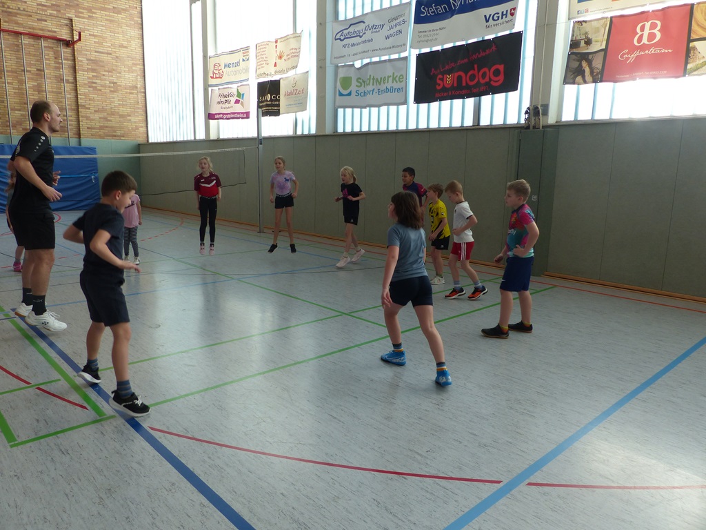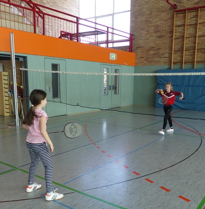 Am 06.03.2025 und am 10.03.2025 fanden die diesjährigen Badminton - Projekttage in den zweiten Klassen unserer Schule statt. Ein Jugendtrainer und Spieler der Schüttorfer Badmintonabteilung vermittelte den Kindern verschiedene Grundelemente des Badmintons und bereitete ein kleines Schnuppertraining für sie vor. Nach einer anfänglichen Testphase durfte jedes Kind ausprobieren, wie viele Schläge ihm hintereinander gelingen und dabei seinen eigenen Rekord aufstellen. Am Ende der Stunde waren dann alle Kinder so gut in die Sportart eingeführt, dass sie mit einem Partner sogar schon den Ball über das Netz spielen konnten. Das war ein schöner Exkurs in eine neue Sportart.