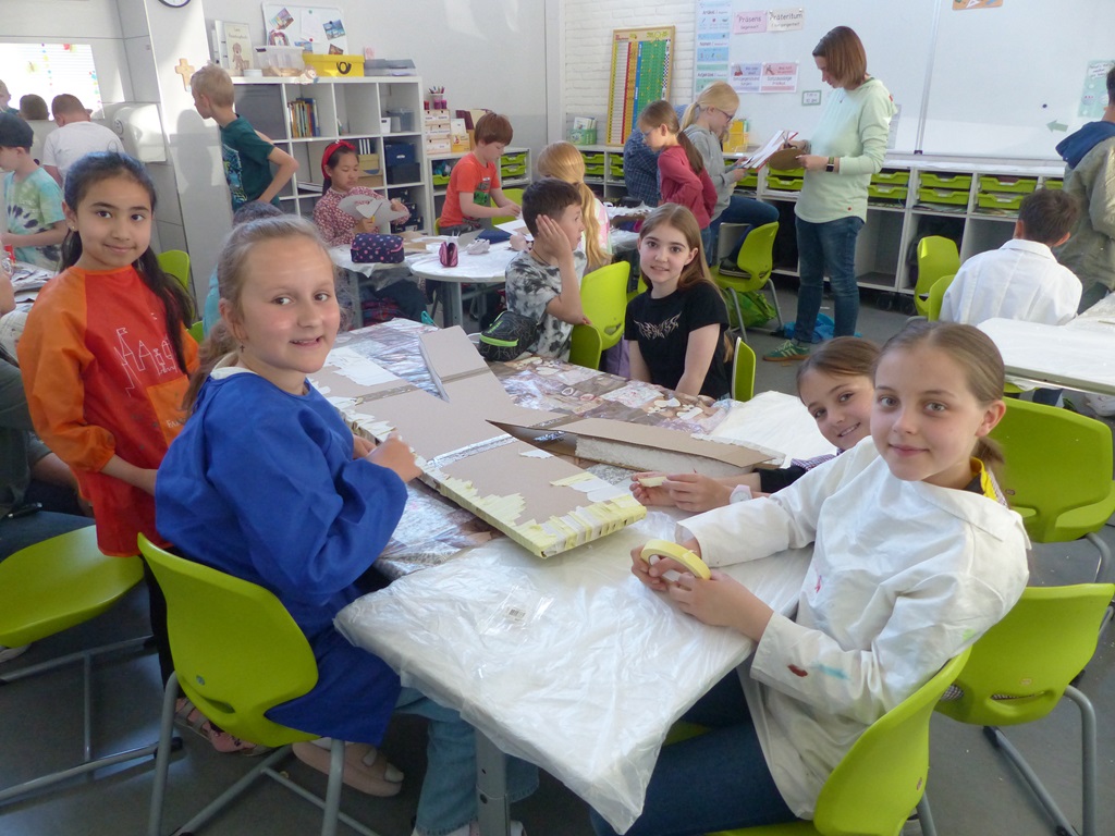 Gestartet sind die Kinder mit dem Bau ihrer Projekte im Kunstunterricht. Einige haben dann zu Hause noch fleißig weiter gebaut.