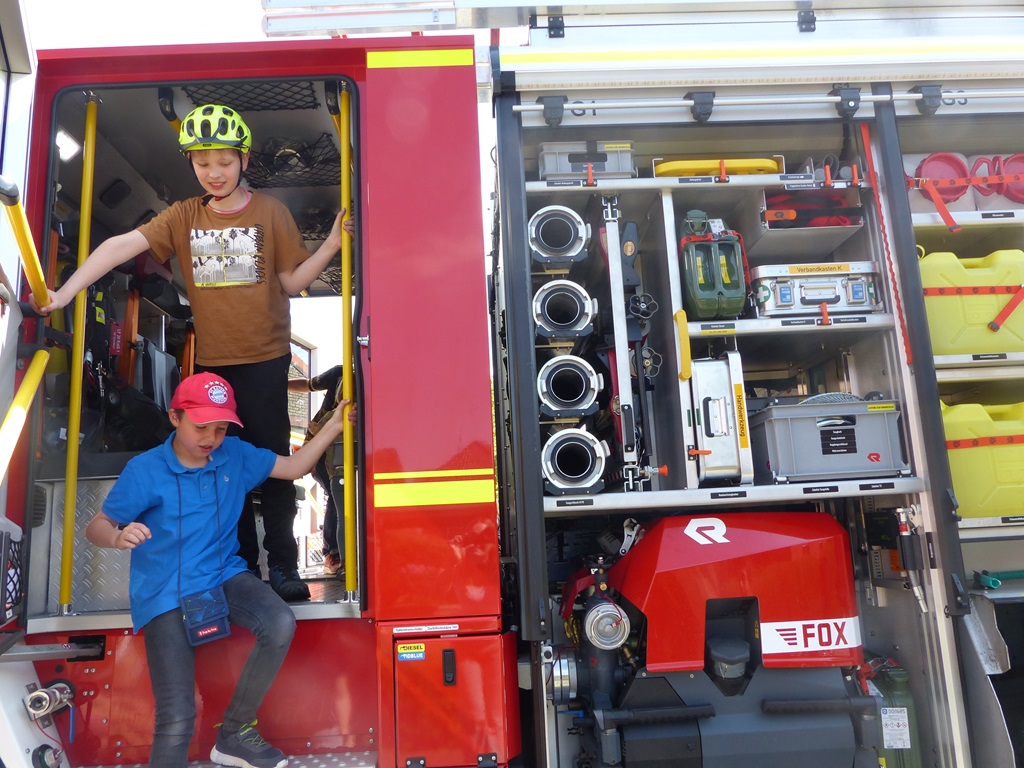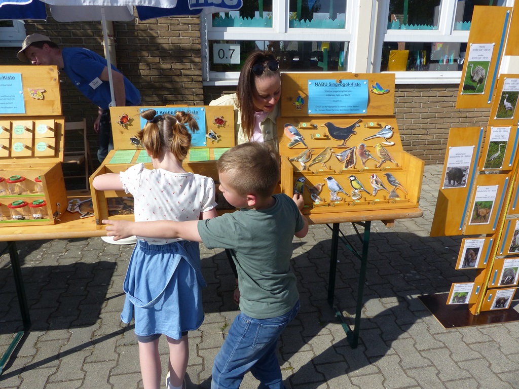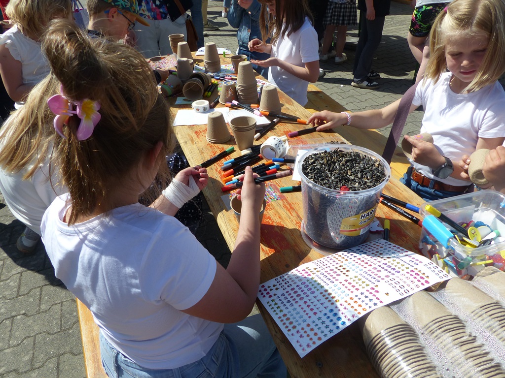 Angeboten wurden viele spannende Attraktionen: Das beliebte Fußballdart, bei dem die kleinen Torjägerinnen und Torjäger ihre Zielgenauigkeit unter Beweis stellen konnten, die Tombola, die viele tolle Preise bereithielt sowie das Katapult, bei dem sich die Kinder Überraschungen erwerfen konnten. Auch das Kinderschminken brachte viel Freude und Farbe auf das Fest. Besonders die Wasserspiele der Feuerwehr waren bei den warmen Temperaturen ein Hit – hier konnten die Kinder sich erfrischen und gleichzeitig etwas über die Arbeit der Feuerwehr lernen. Außerdem gab es einen NABU-Wagen, der spannende Einblicke in die Natur und den Naturschutz bot. Zudem hat der NABU tolle Preise in Form von Aktivitäten für die Tombola gesponsert, was die Gewinnchancen für die Kinder noch attraktiver machte.