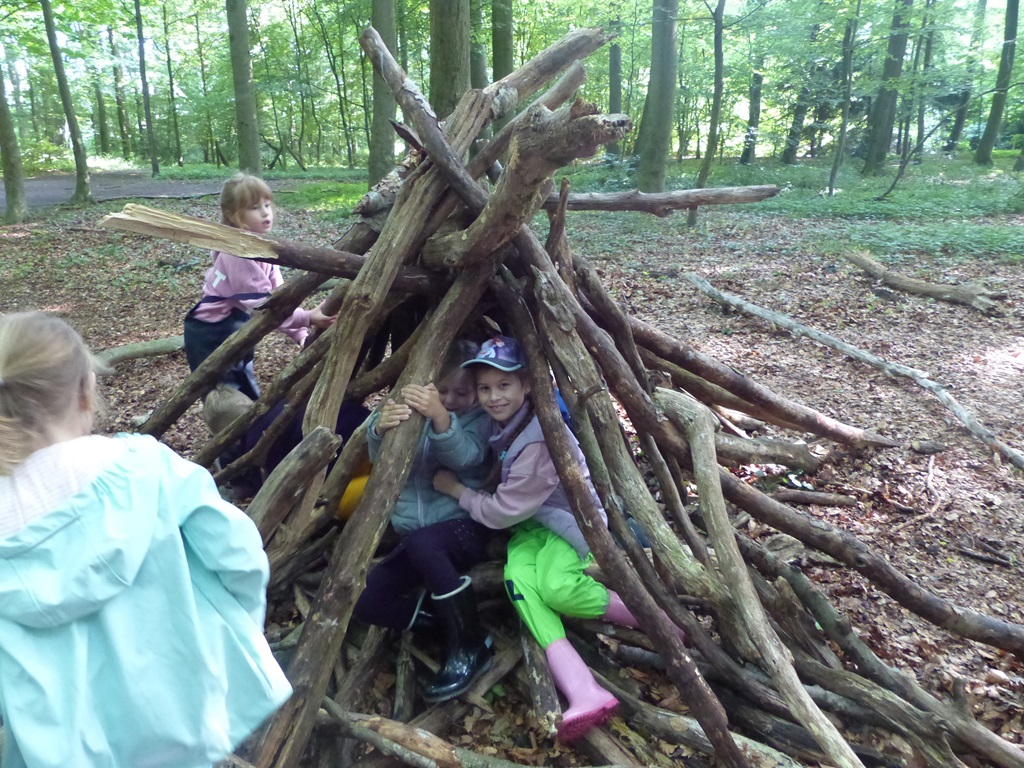 Die Kinder der dritten Klassen machten einen kleinen Ausflug in den Wald. Fleißig wurden von den Kindern Äste und kleine Baumstämme gesammelt, um Tippis zu bauen. Sicherlich wären die Kinder lieber in der Schwimmhalle gewesen, die aufgrund von Renovierungsarbeiten noch geschlossen ist. Jedoch hatten alle sehr viel Spaß und wären gerne noch länger im Wald geblieben. Auf den Bildern können die gebauten Tippis der Kinder bewundert werden.