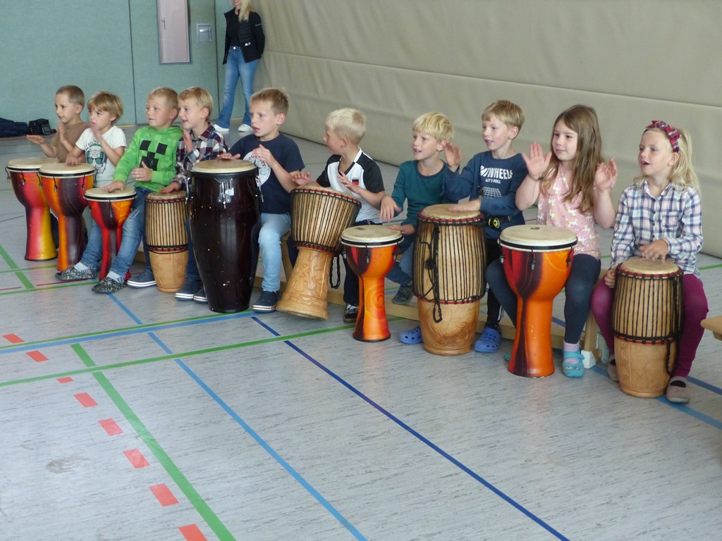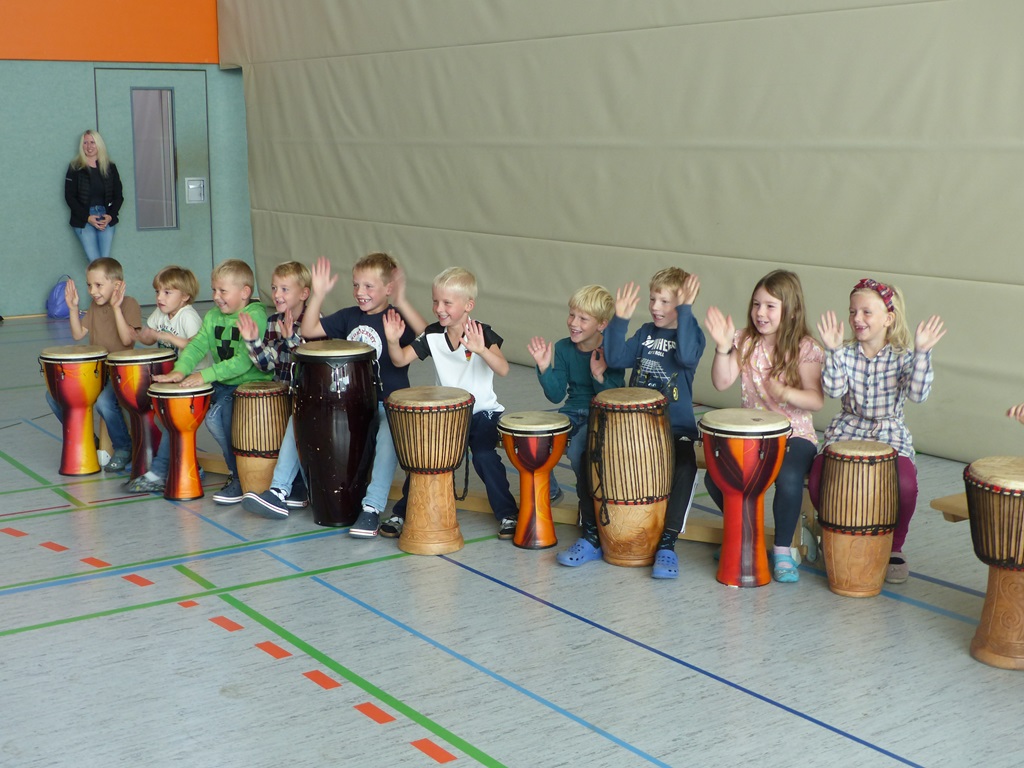 Auch in diesem Jahr konnten die Schülerinnen und Schüler wieder gemeinsam mit Morphius und Michael trommeln. Im Mittelpunkt standen feurige und mitreißende Rhythmen, afrikanisches Lebens-gefühl und vor allem viel Freude und Begeisterung für das gemeinsame Musizieren.